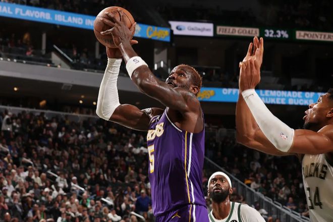 本场比赛中,湖人的先发中锋德安德烈-艾顿(DeAndre Ayton)的表现还是能够保持在一个很高的水准的。艾顿全场出场28分26秒,投篮13中9,罚球2中2,得到了20分10篮板2抢断1盖帽的两双数据,还有3次失误和5次犯规,正负值为+20。艾顿在进攻端也是展现出了应有的篮下得分能力和中近距离投射能力,他的吃饼能力和进攻效率都是相当不错的。艾顿在防守端的表现同样是相当突出的,他也是能够在扬尼斯-阿德托昆博(Giannis Antetokounmpo)的冲击之下守住球队的内线。艾顿在本场比赛中算是在攻防两端都起到了应该起到的作用,他的比赛态度非常强硬,他也是为球队的这场胜利做出了自己的贡献。