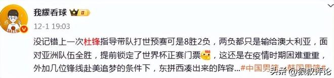 但在世预赛的窗口期,中国男篮拥有比较完整阵容的配置,杜锋取得8胜2负的战绩提前晋级世界杯正赛,输2场比赛则是不敌澳大利亚。